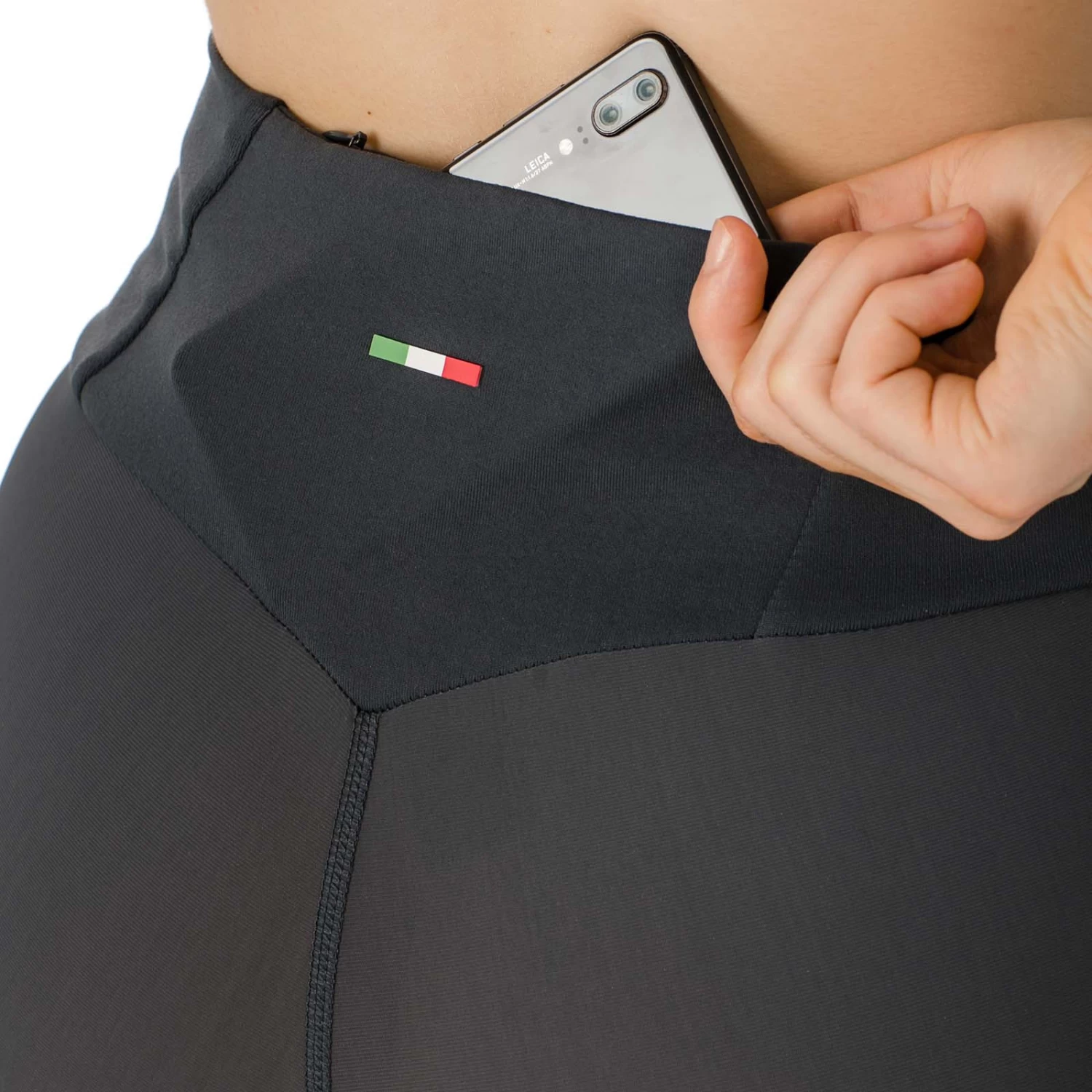 - Phone pocket to back and shaped waistband