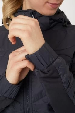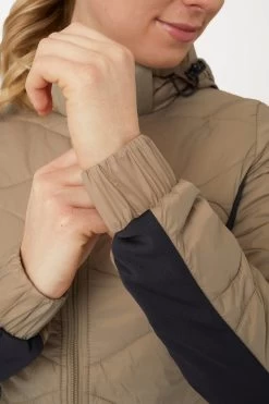 The B Vertigo Brielle hybrid jacket is made from light material that is warmly padded. Elastic fleece provides additional warmth, while breathable mesh inserts offer ventilation. The hood is attachable with press buttons. Two zipper pockets keep your belongings safe. Neutral colours are easy to incorporate into your riding wardrobe. Elastic hem and cuffs make sure this jacket stays in place. Also available as vest version (#33626).