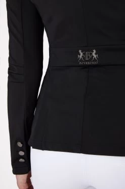Elegant details and a lightweight fabric give this classy show jacket its elegant look and feel. The careful attention to detail and quality workmanship make this jacket special. The soft fabric with extremely breathable mesh lining will keep you comfortable all day long thanks to the quick-dry function. A metallic silver-coloured piping along the collar and pockets make this show jacket look classy. The front welt pockets and back slits together with the shiny gun metal embroidery provide a stunning appearance.