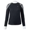 A great choice of show shirts with classic lines and thoughtful details. Made of breathable performance fabric that create a lightwear and flattering show shirt that is designed to be high-performing. This top has a front closure with crystal and silver details.