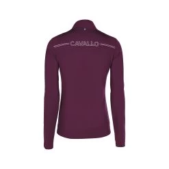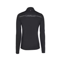 This lightweight stand-up collar shirt made of bi-elastic functional material has a softly brushed inside for extra next-to-skin comfort. The zipper on the collar has a Cavallo slicer decorated with crystals. A small shimmering Cavallo crystal logo can be found on the left chest.
