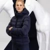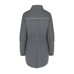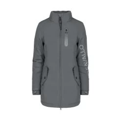 This waterproof functional parka is lightly padded and cut slightly longer. With the 2-way front zip and the rear riding slit (also with zip), it is also ideally suited for riding. The reflective logo print, along with reflective strips on the pockets, ensures good visibility in the dark. The cuffs are adjustable with press studs. Two zipped pockets at the front offer enough space for mobile phone, horse treats and the like. The wide elasticated back ensures that your figure is shown off to its best advantage. The chest pocket has a waterproof zip and is framed with reflective stripes. The hood can be stowed in the collar and is also waterproof with its welded seams. All zips have a noble gunmetal look. There is an exclusive Cavallo logo on the left sleeve.