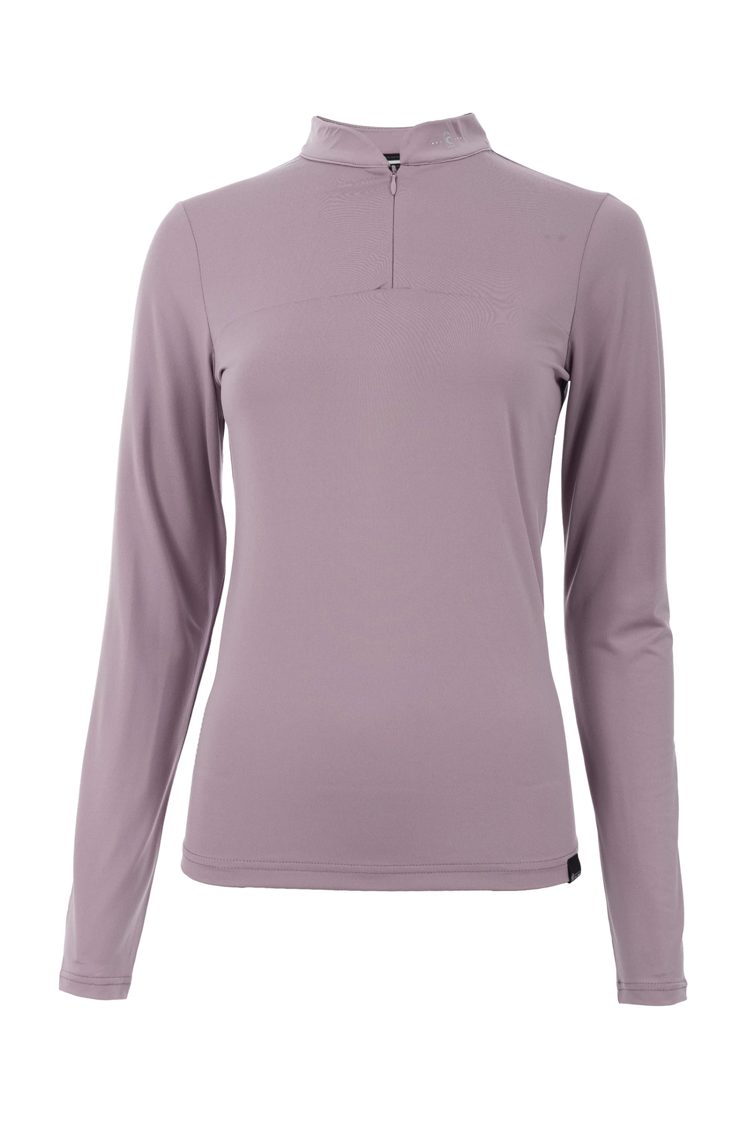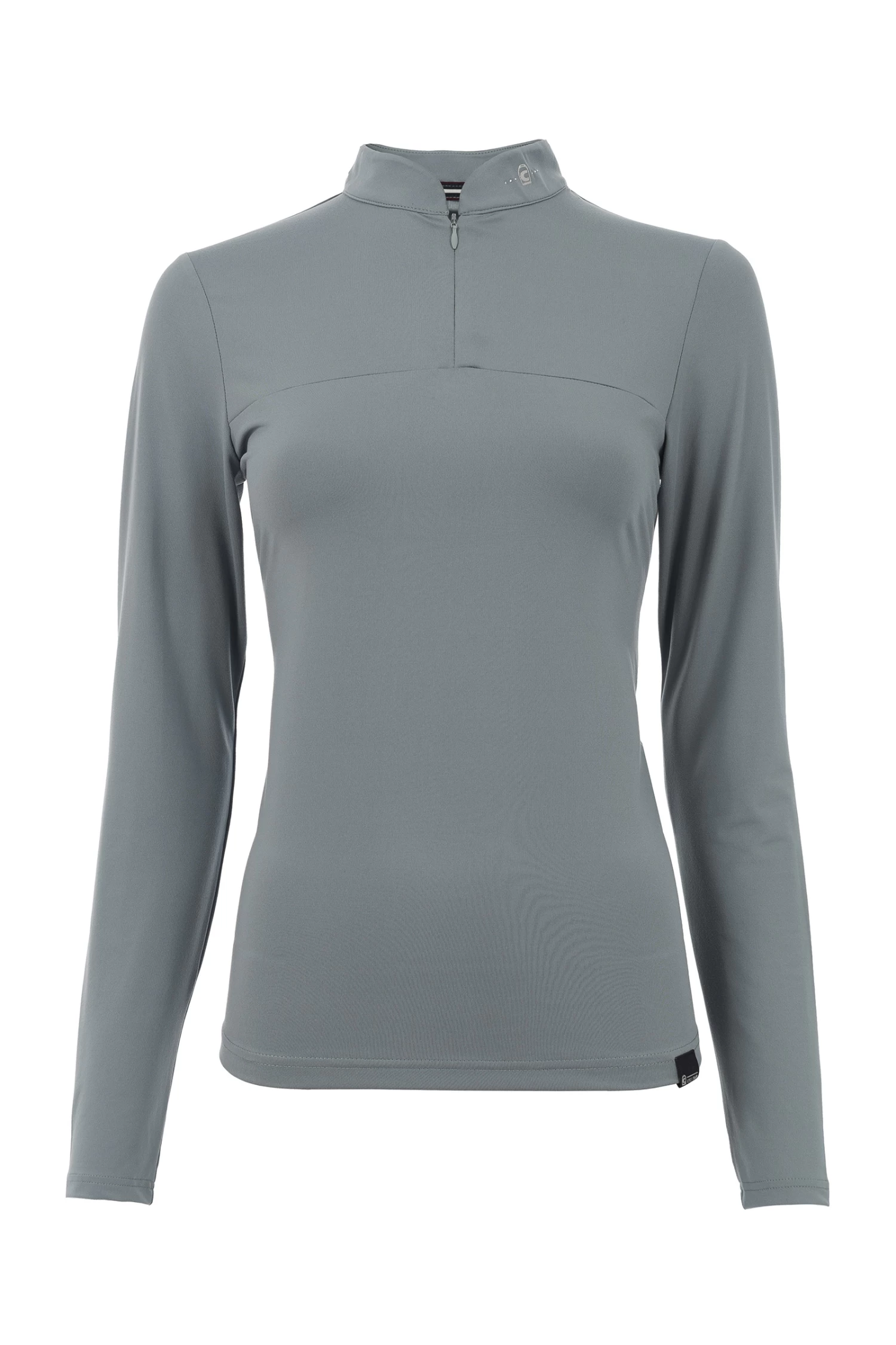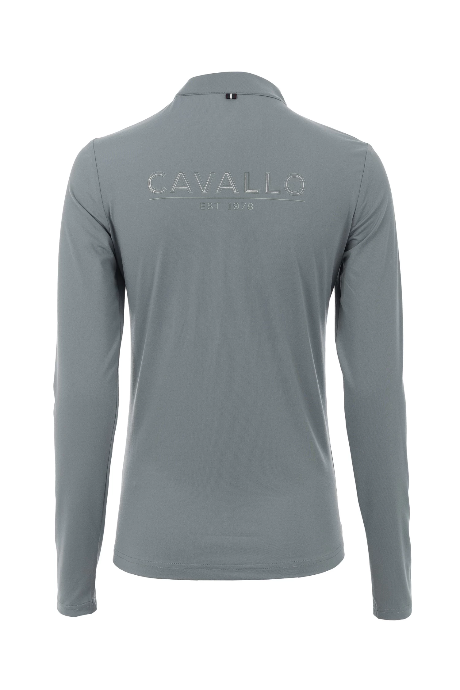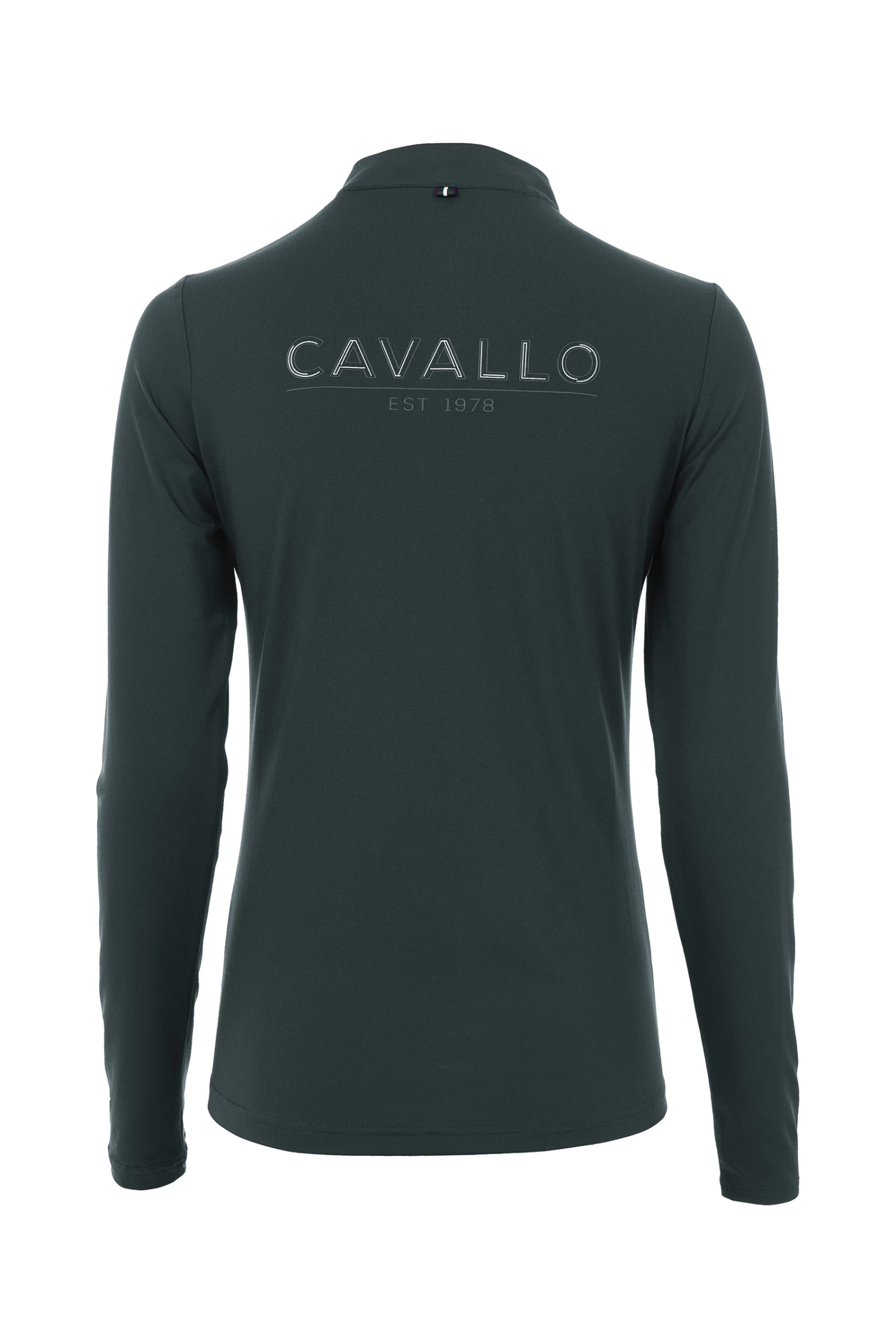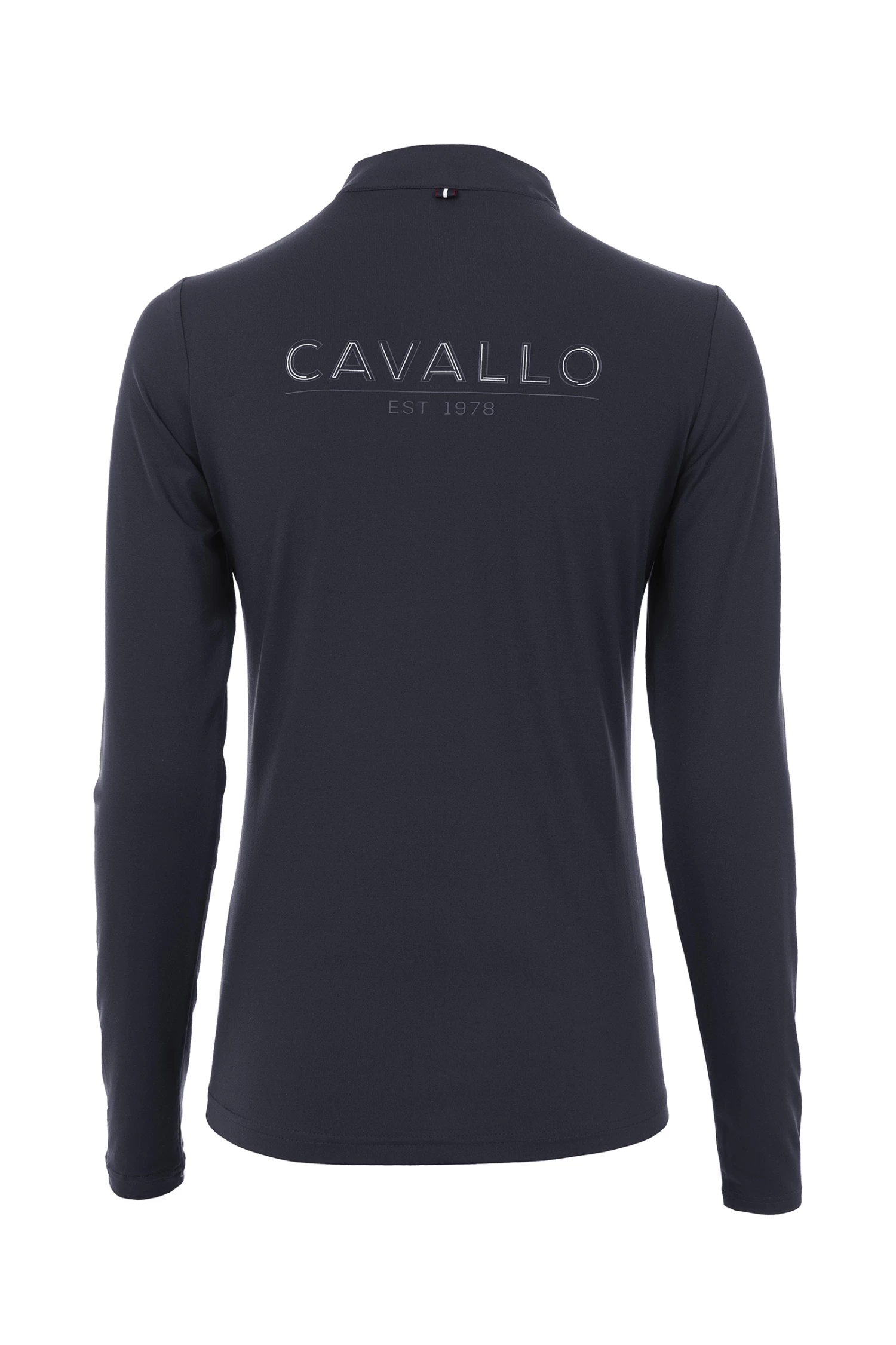 Made of bi-elastic functional material. Seam-covered zip at the collar. Silver Cavallo logo with crystals on the front left collar. Tonal, slightly raised Cavallo artwork with silver accents on the back panel. Flag label at hem.