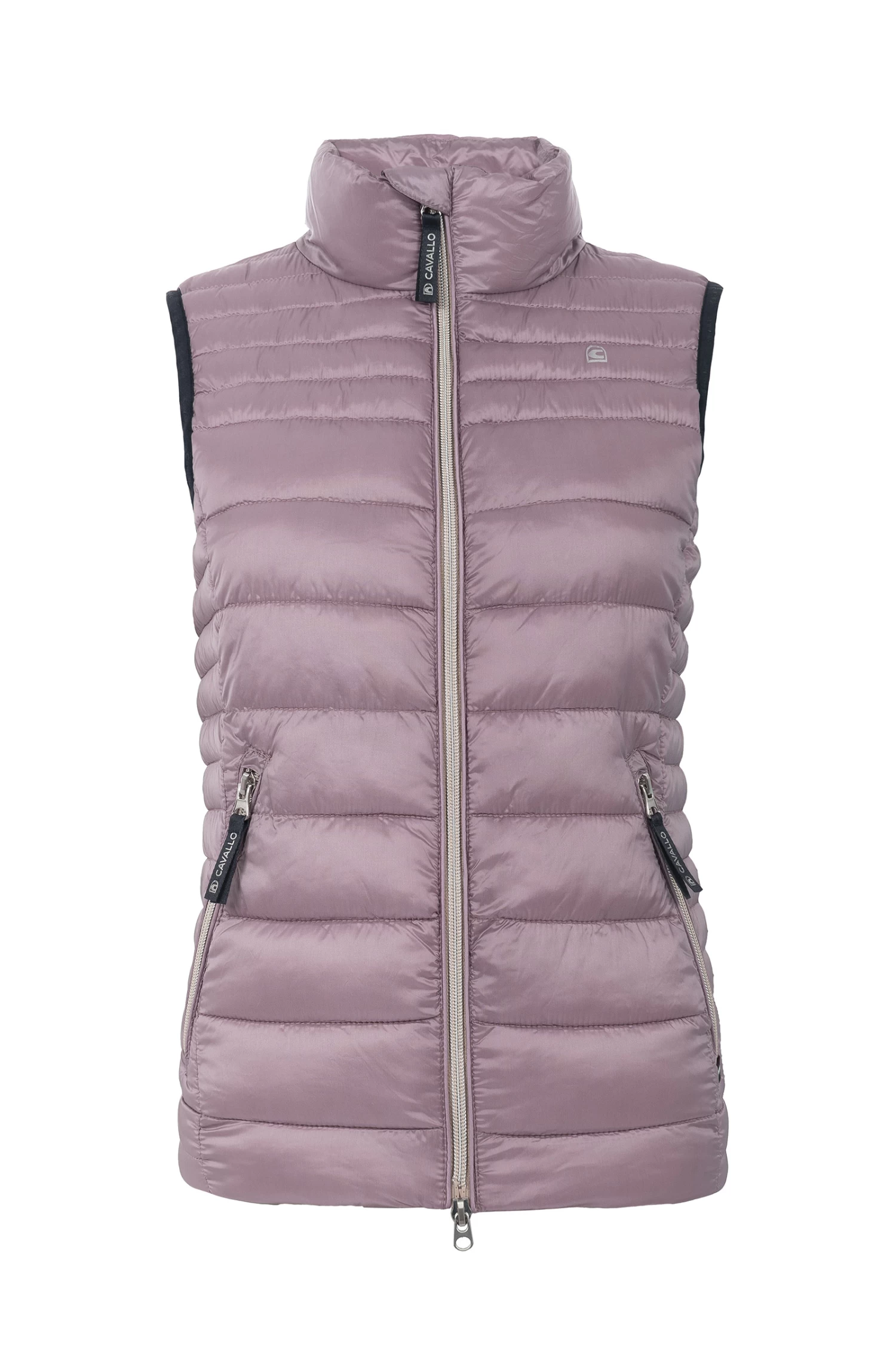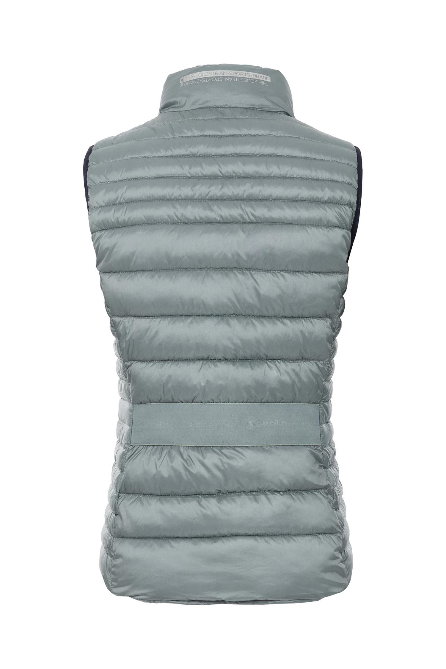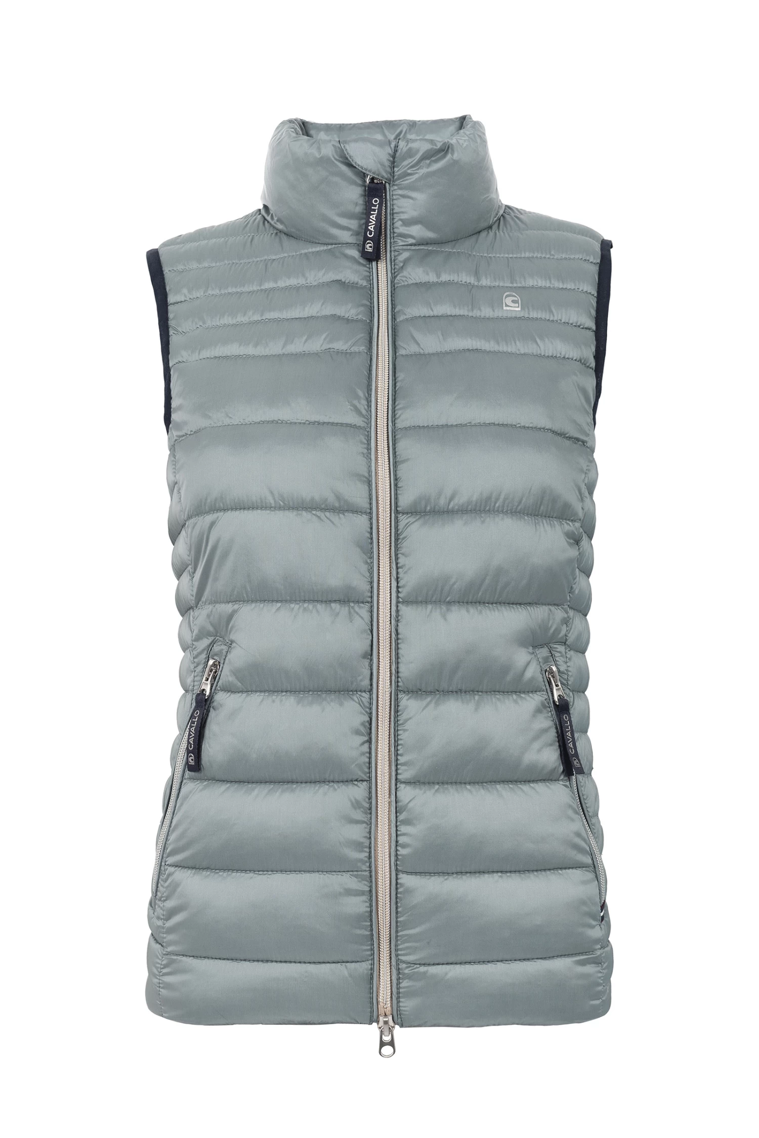 With stand-up collar and slight waistline. 2-way front zip with Cavallo woven ribbon pull. Two front pockets with zips. Inside pocket with zip. Silver prints, e.g. Cavallo logo on the left breast and Cavallo artwork at the back centre of the collar. Tonal Cavallo artwork on the zip underlay in the front centre. Dark blue lining with discreet all-over stirrup print. Decorative Cavallo elastic band insert at the waist in the back. Narrower quilting on the side panel and shoulders.