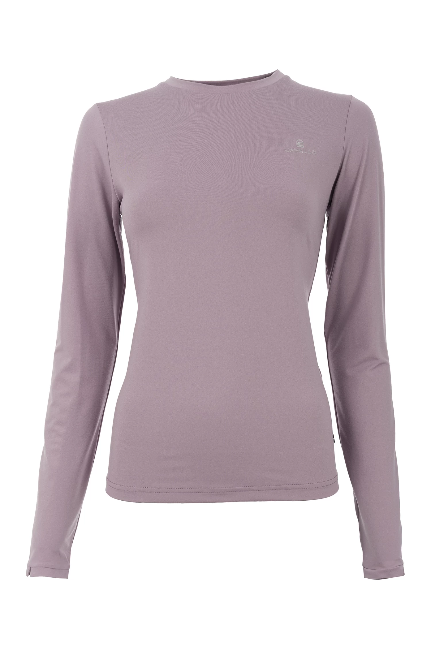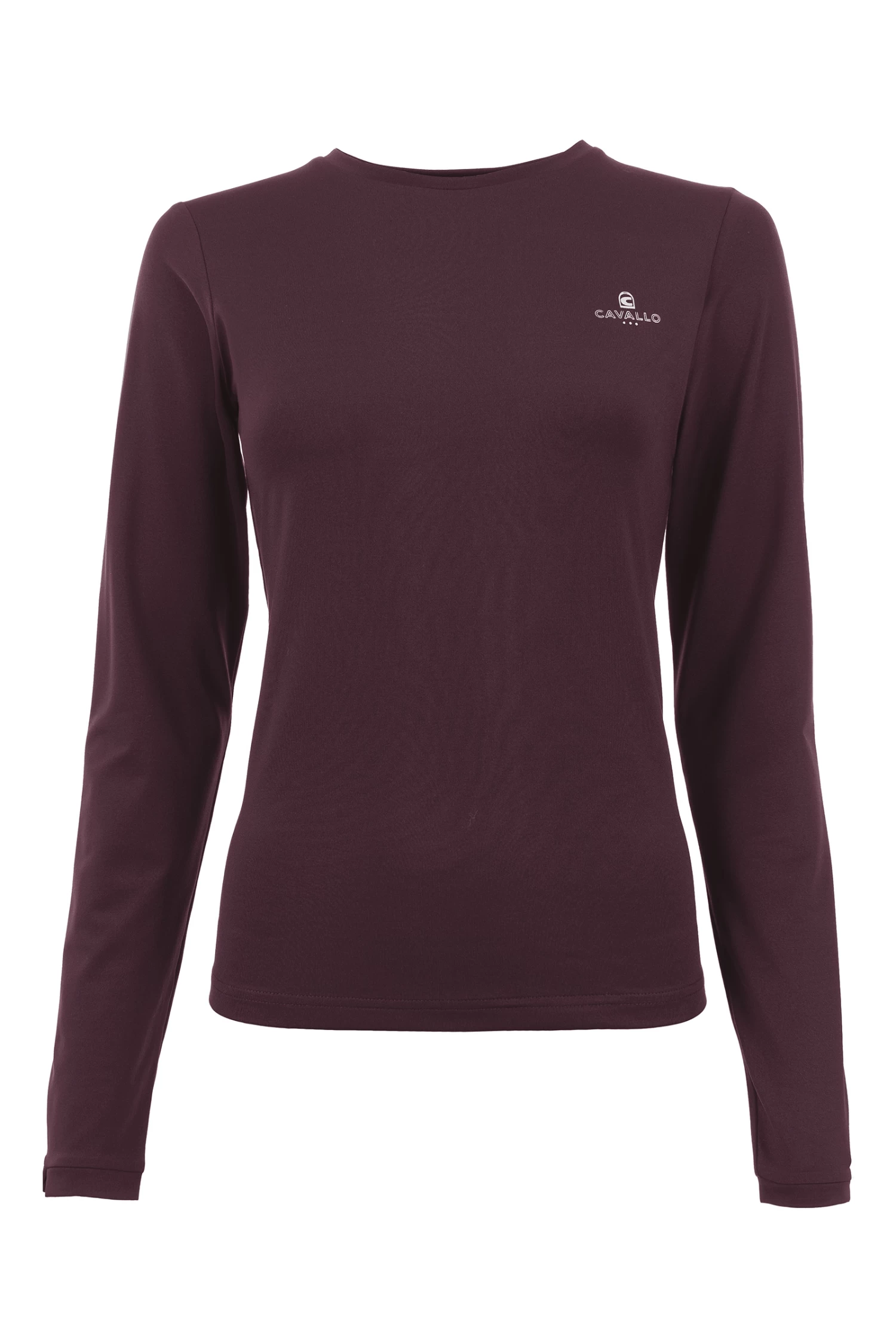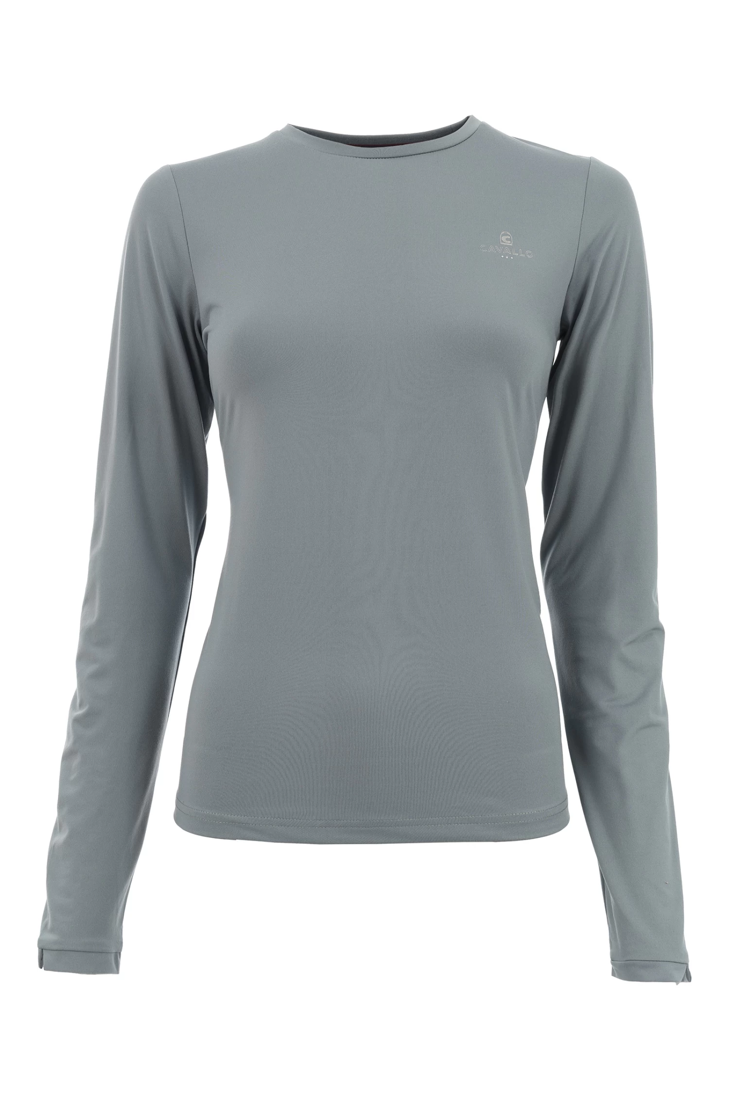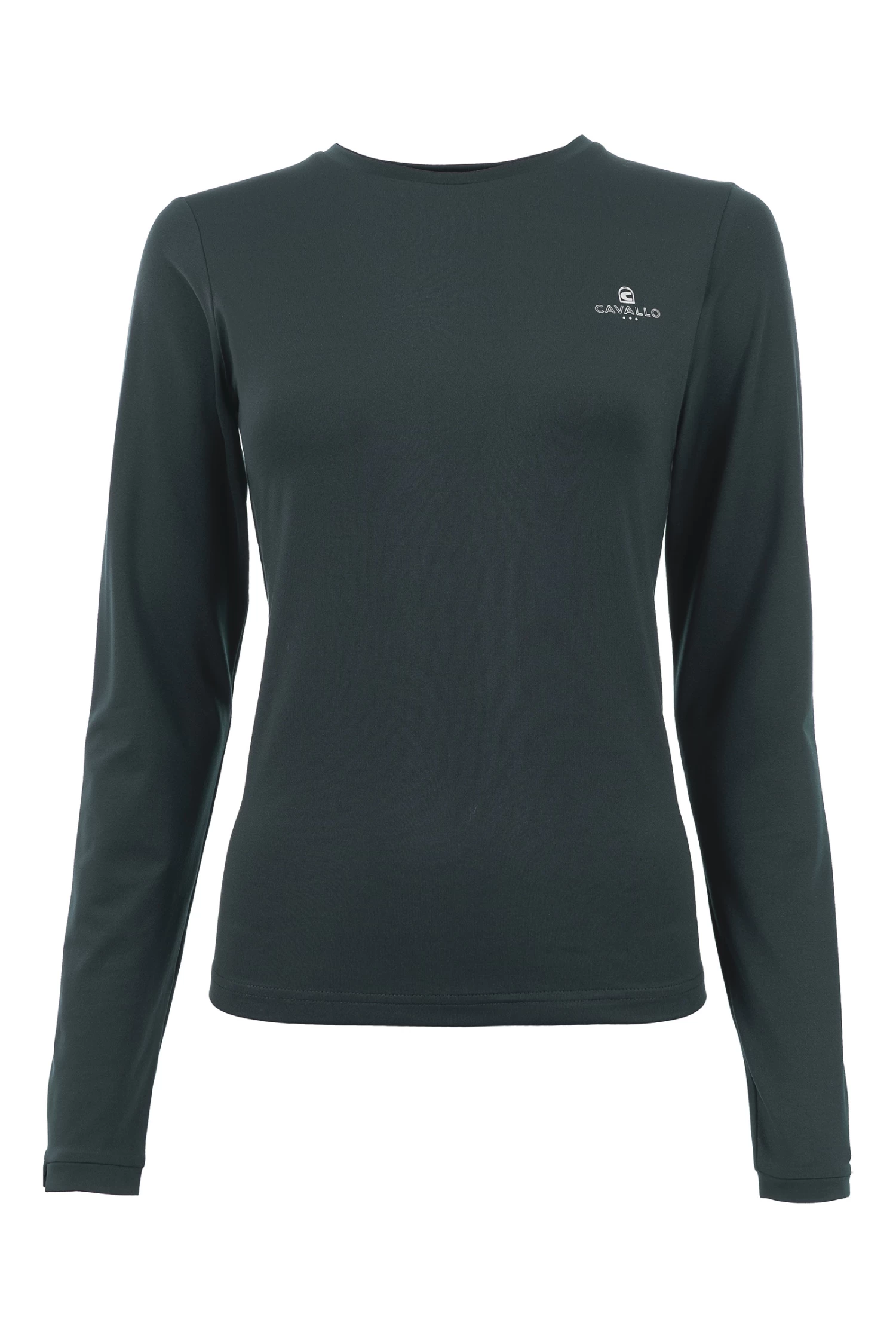 Made of bi-elastic functional material. Silver Cavallo logo on the left chest. Seams with silver thread at the back neckline and shoulder. Silver artwork with crystals below the neckline at the back centre.