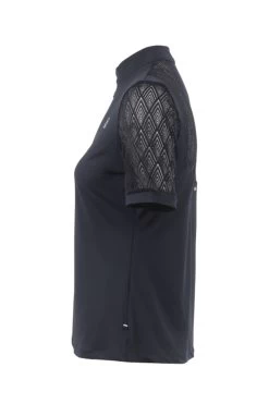 With stand-up collar. Short zip with jewellery handle with rhinestone. Elegant lace inserts on the sleeves and upper back. Sleeve cuffs in tonal functional jersey. Silver rhinestone artwork on the left chest. Silver Cavallo artwork below the lace insert in the back. Silver Cavallo stirrup print on the centre back collar.