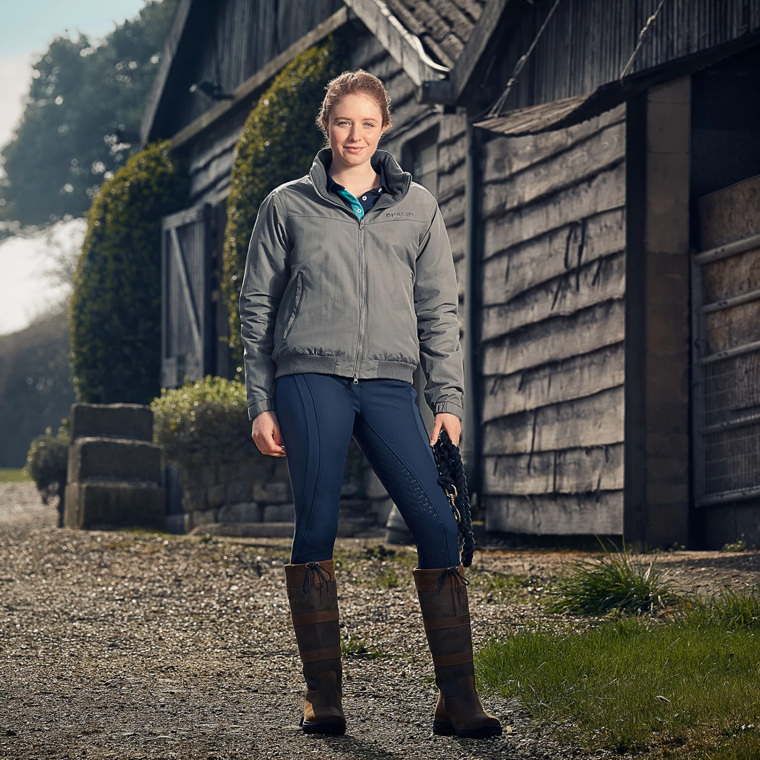 Waterproof jacket with sealed seams to keep you dry. Warm polar fleece lining. Inner zip access for easy back panel embroidery. Rib hem basque.