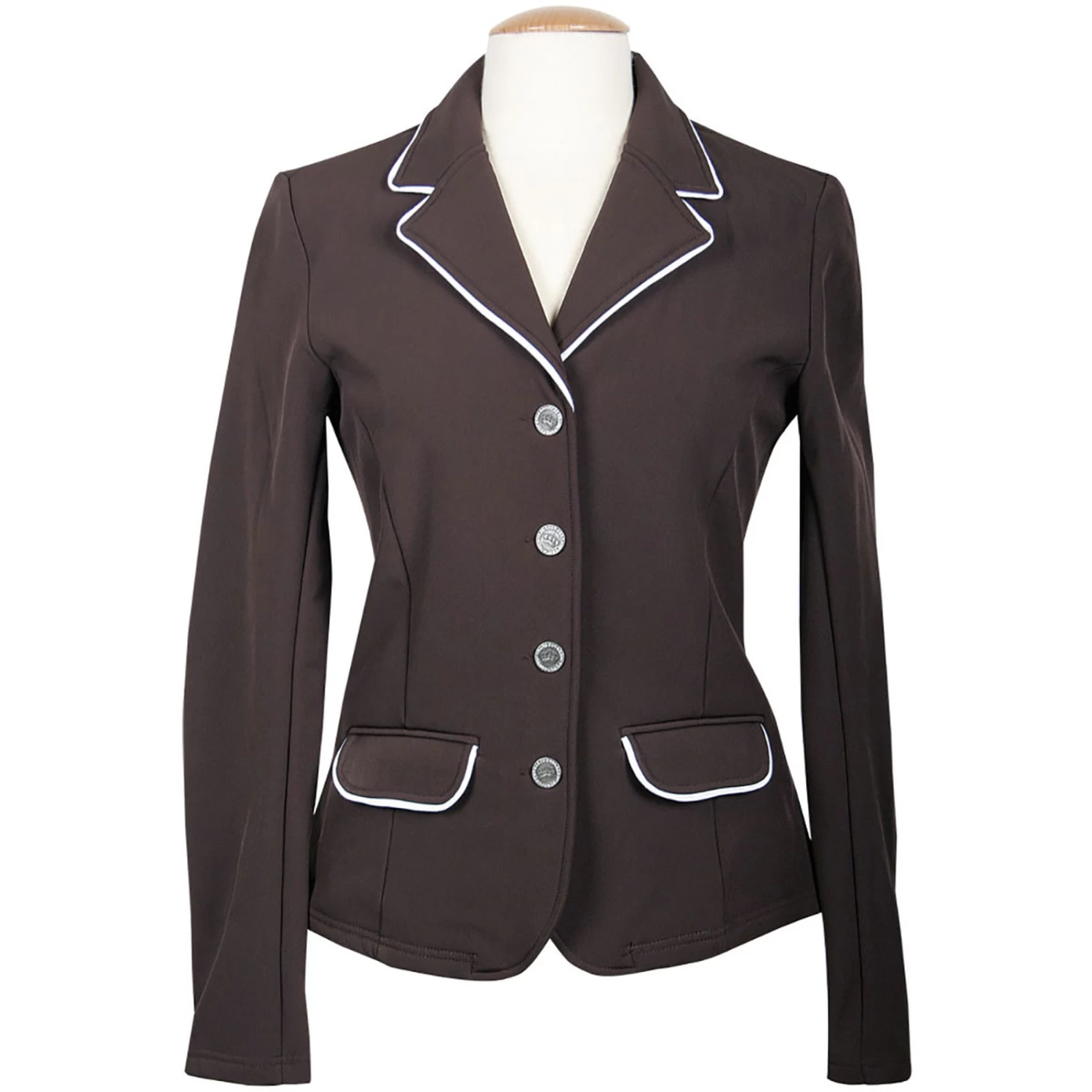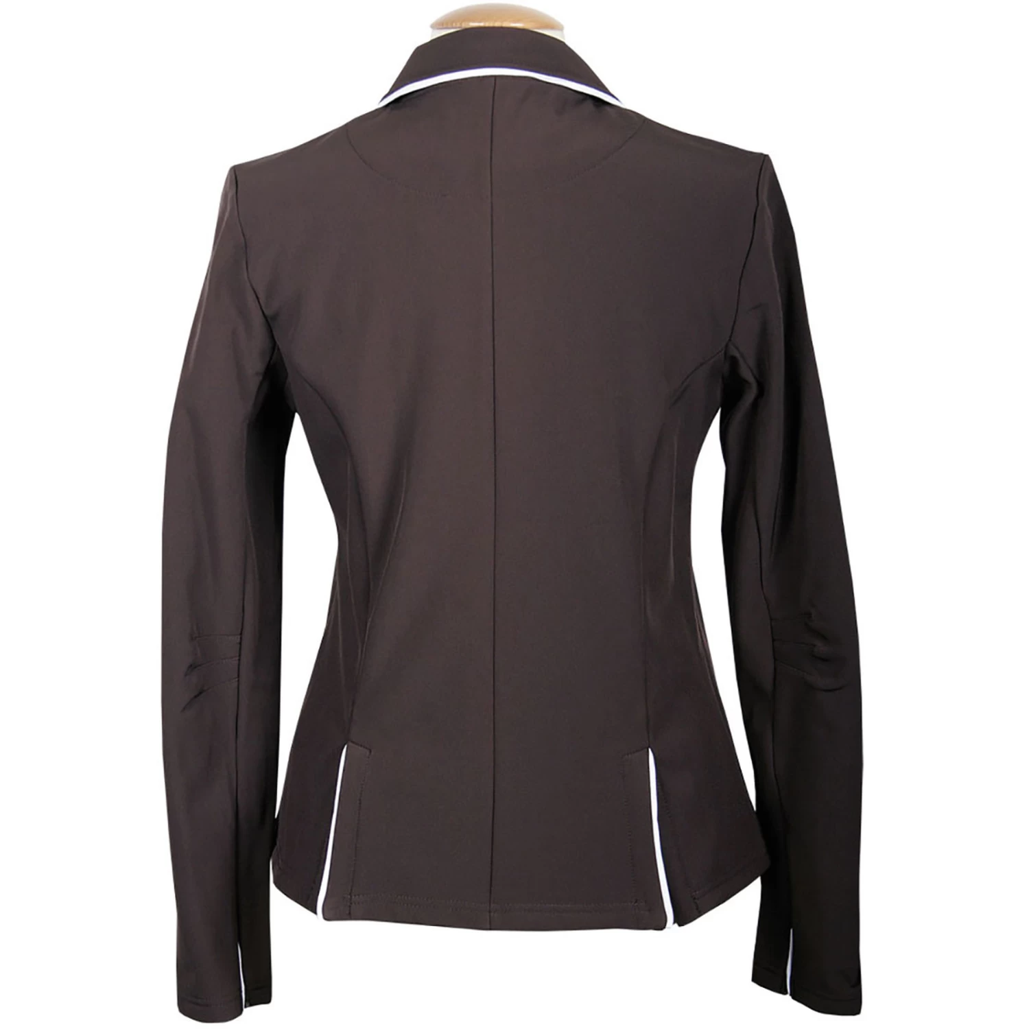 Sporty, competition jacket made from high quality, water-repellent, wind proof softshell fabric. Fitted model, two front flap pockets, contrast piping, two splits.