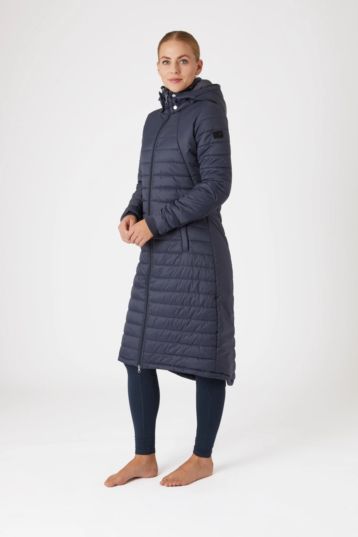 The Horze Cecilia riding jacket was designed for riding in cold, wet conditions. Breathable fabric keeps you comfortable. The long cut with back slit and press buttons protects your legs and the saddle. The waist can be adjusted for your perfect fit. The hood is detachable. Zipper pockets keep your belongings safe.
