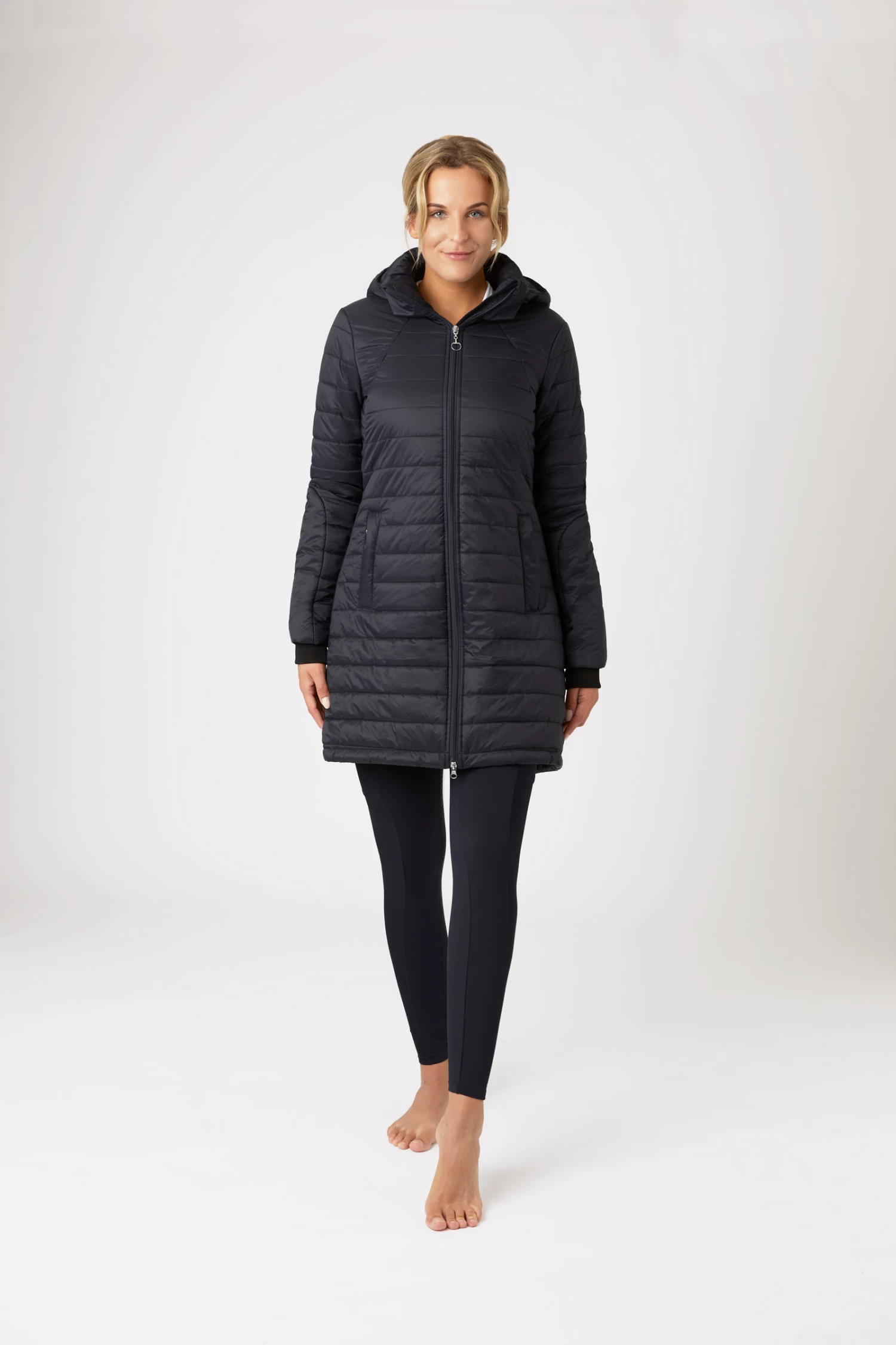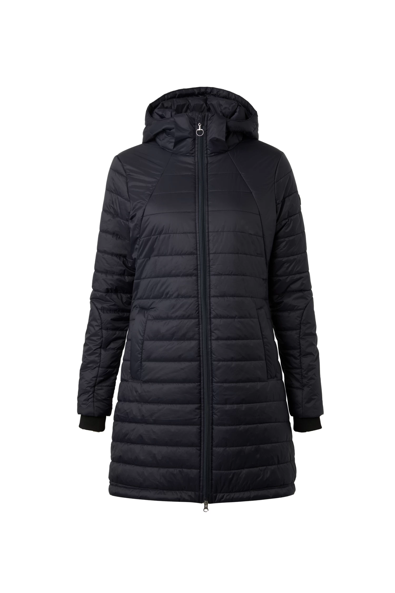 The waterproof, breathable, quilted Horze Charlotte Women’s Long Riding Jacket with soft lining is the perfect choice to cover you and your saddle during cold, snowy winter rides or anytime you want to stay extra warm. The long skirt opens in the back and magnetic snaps keep drafts away while protecting your saddle from scratchy buckles or buttons. Adjustable elastic straps on the inside keep the hem at place when in the saddle. A tapered waist adds a feminine fit to this versatile, long jacket. Highly functional with many details for active riders.