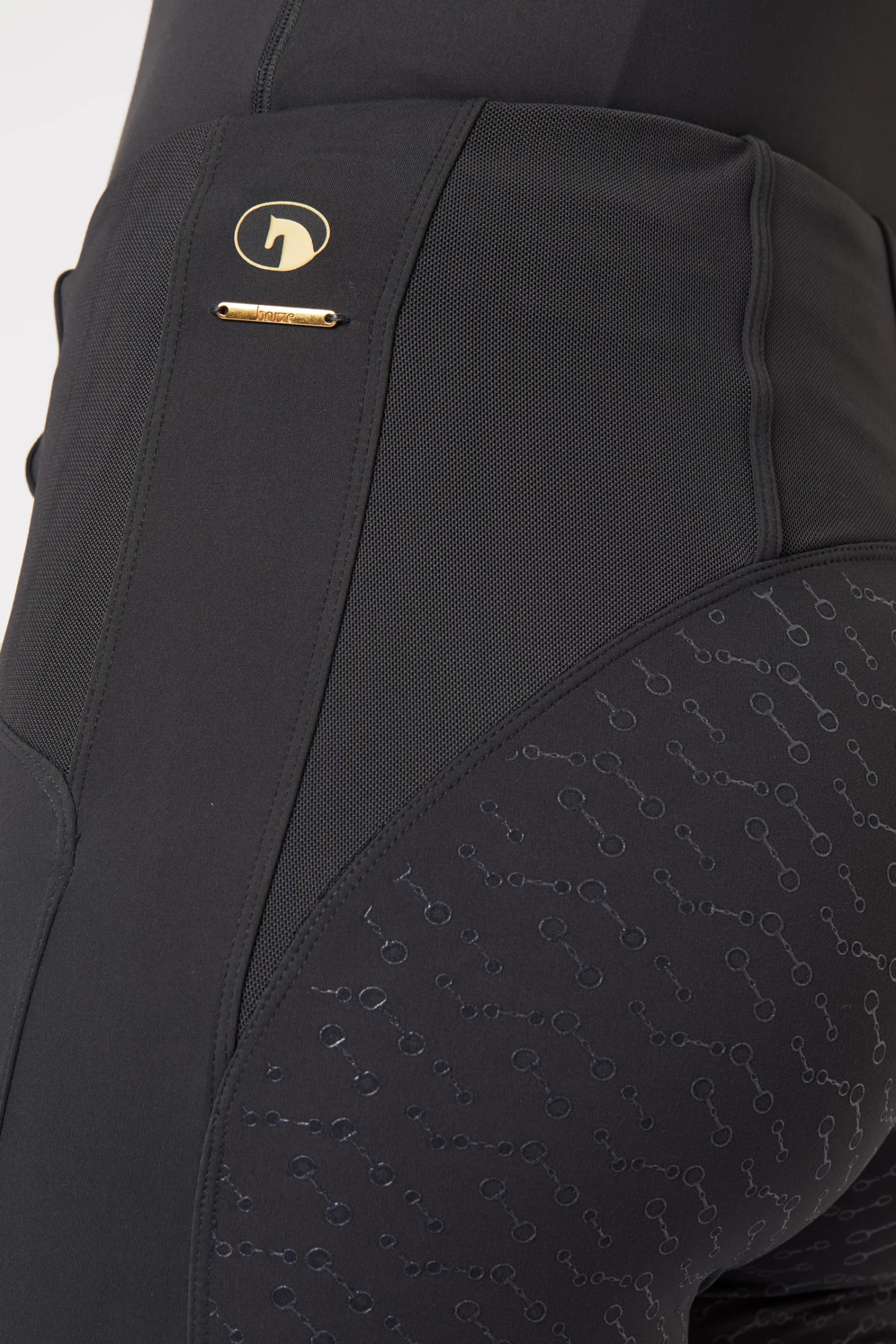 Our soft, functional Horze Ciandra riding tights are super comfortable. Quick-drying material is breathable with mesh details. UPF 50+ protects you from the sun. The waist in corset structure ensures great posture and flattering look. A hidden phone pocket at the back waist keeps your phone safe. Combine these tights with our Horze Ciandra training shirt, training jacket and riding gloves for a full outfit.