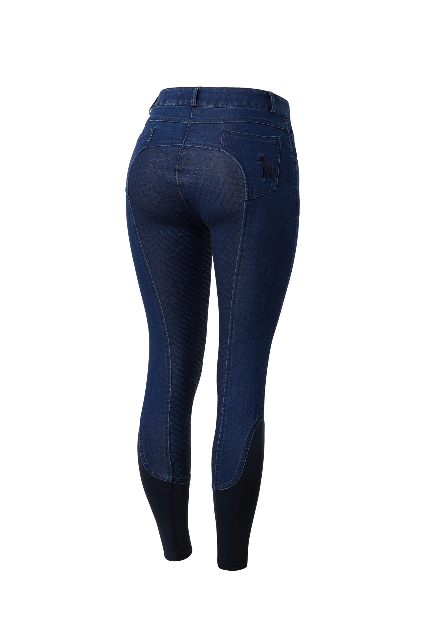 The Horze Delia denim breeches are super lightweight and breathable for comfortable riding. The silicone full seat provides great grip in the saddle, and the medium waist does not restrict your movement. 5-pocket design looks just like jeans, and logo details add a cool feature. Pair them with your favourite belt, training shirt and riding boots.