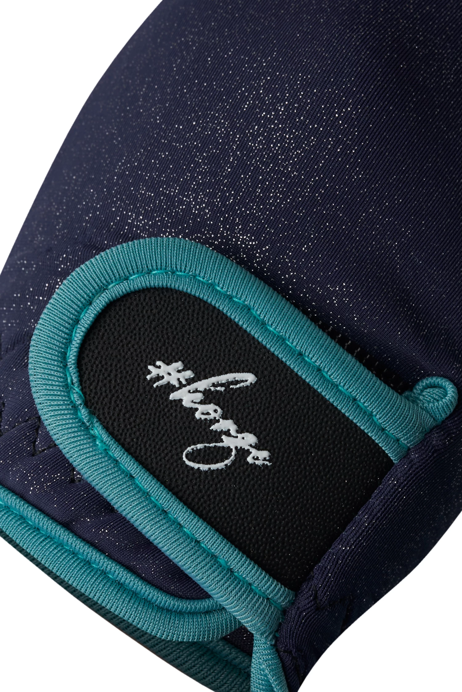 Beatiful kids’ gloves with a glittery back hand made from elastic material to increase freedom of movement and wearing comfort. The #horze detail matching the collection can be found on the touch tape closure.