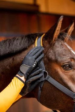 Comfortable allrounder with stretchy backand fabric and serino on the palm. Reinforcements where the reins are. Elastic aound the wrist for a comfortably snug fit and classic touch tape closure and sporty ‘h’ logo on the right side.