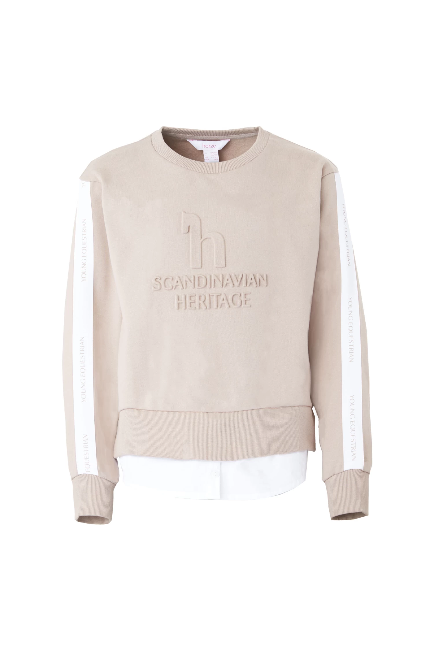The Horze Leighton teens sweater with blouse is perfect for turning your riding outfit into an everyday look. The soft fabric with brushed inside is super comfortable while riding, and the light blouse can be attached for a cool, but smart look afterwards. Pair this sweater with your favourite Horze Leighton teens breeches or regular jeans, and you are good to go!