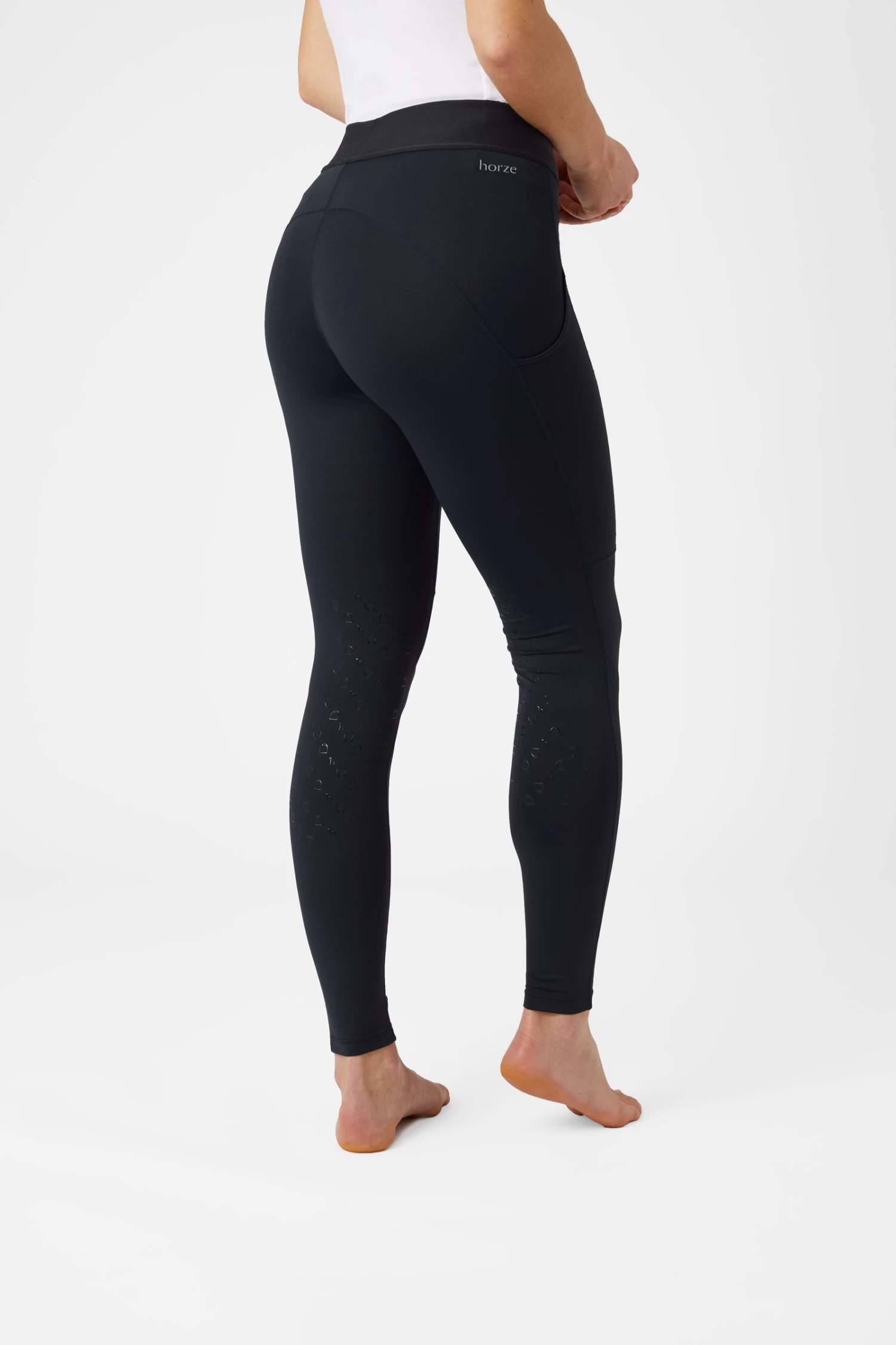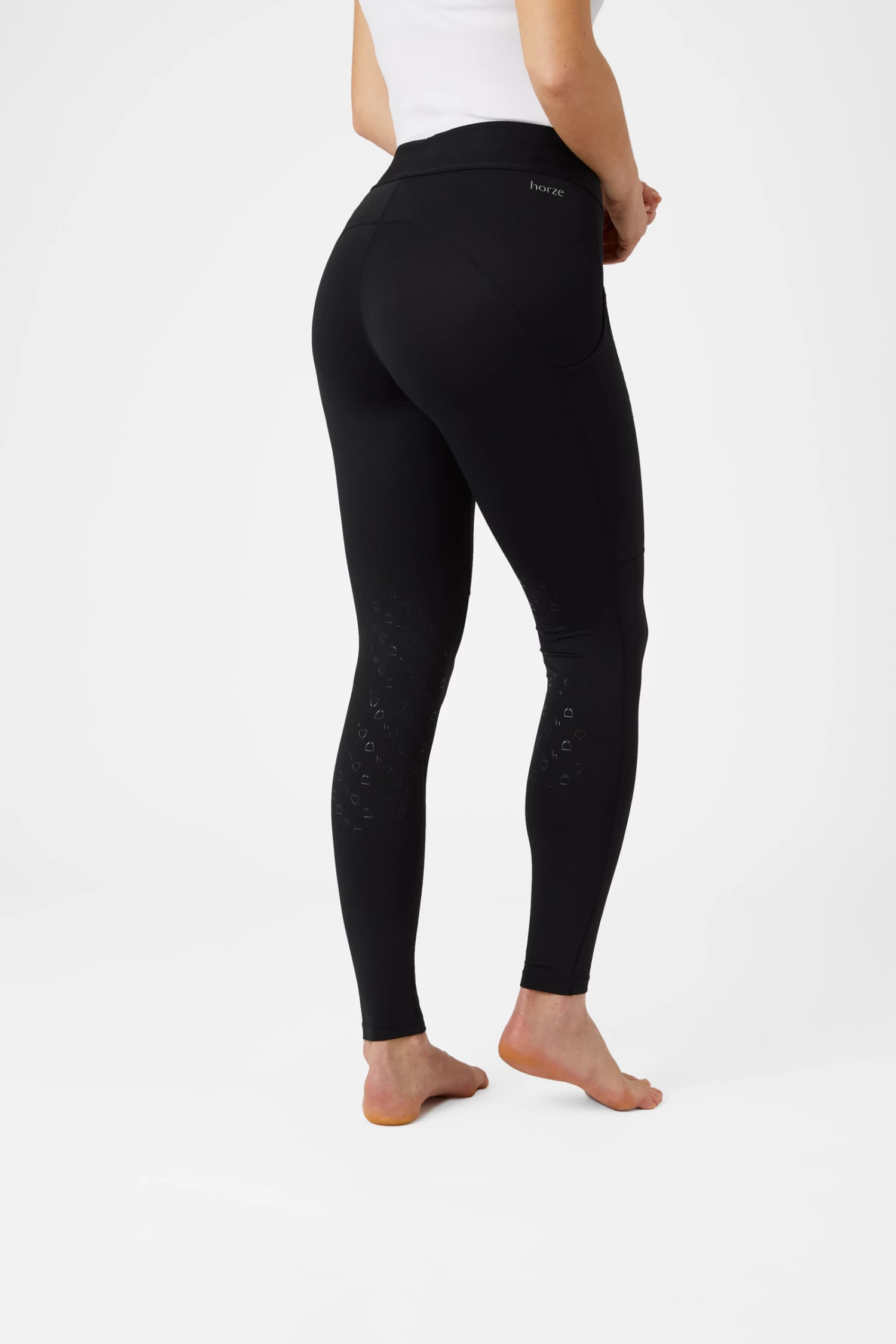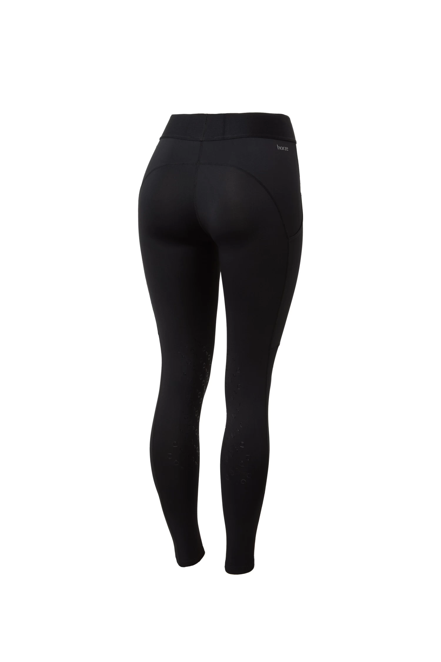 The Horze Nadia knee patch riding tights are super comfortable due to lightweight material and a high elastic waist. Two large pockets keep your phone safe, and two small pockets provide space for treats. Silicone grip keeps you safely in the saddle. Also available as full seat tights.