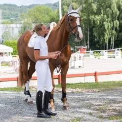Tall field boots are a must for competition when half chaps and jodhpurs just won’t do. These beautiful Brazilian leather boots have a back zipper with an elastic flap to look sleek and smooth. A rubber sole and multiple foot sizes and widths offer comfort. The foot has punched details, fixed elastic laces and a nice spur rest. The lining is soft suede for comfort. Z emblem at the top of the leg shaft includes a small metal button with crystal-encrusted logo. A leather strap with snap button at the top and bottom of the zipper keeps this boot securely fastened.