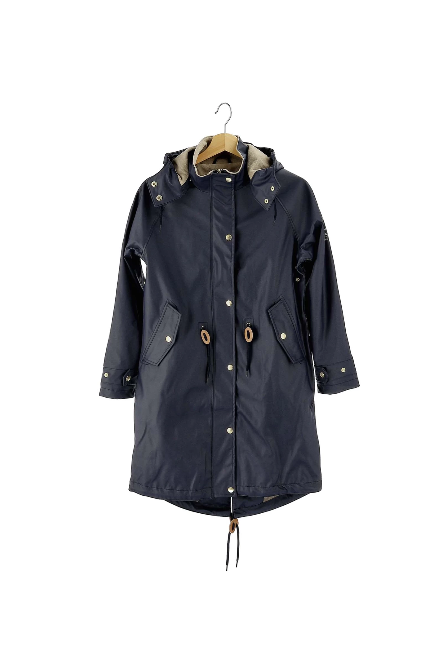 - Long, waterproof raincoat in soft and comfortable PU material Rear riding vent