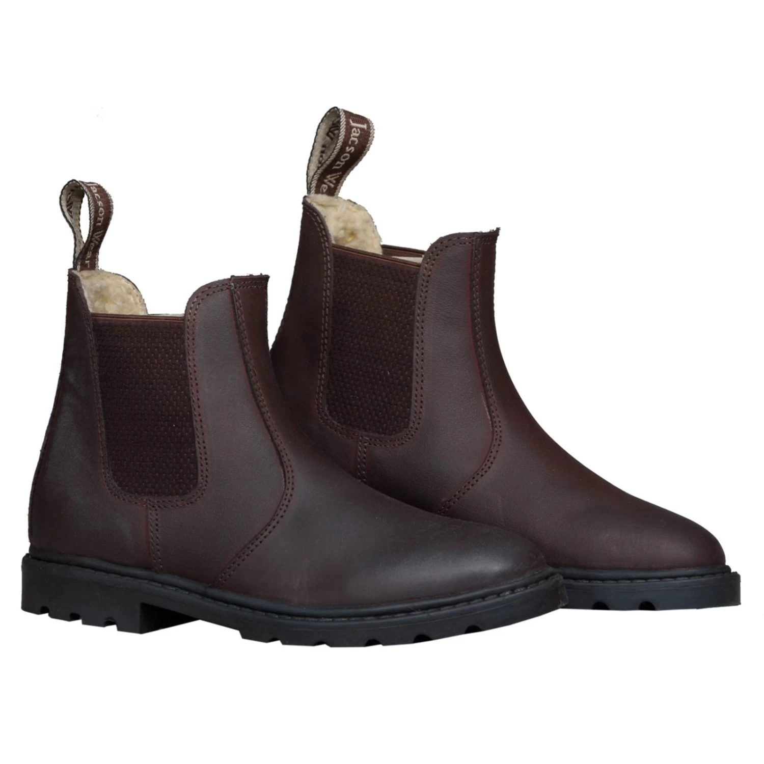 Warmly-lined classic jodhpurs, with pile lining. A bit heavier rubber sole. Oiled Bovine leather. Elastic sides for a good fit.