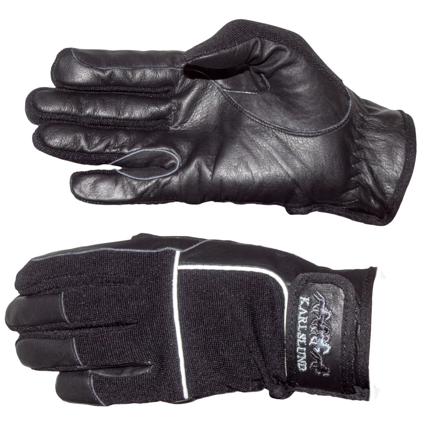 Comfortable riding gloves in leather with light material and with hook and loop fasteners.