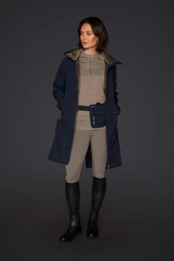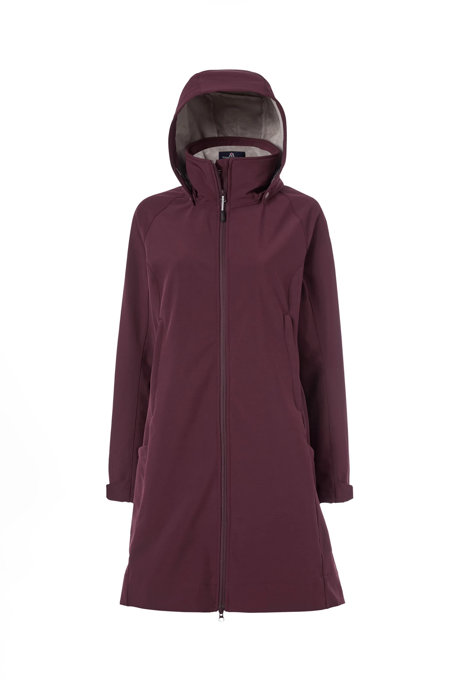 Functional water- and wind repellent softshell parka with feminine fit. Lined with soft teddy, long zipper opening at back and detachable hood.