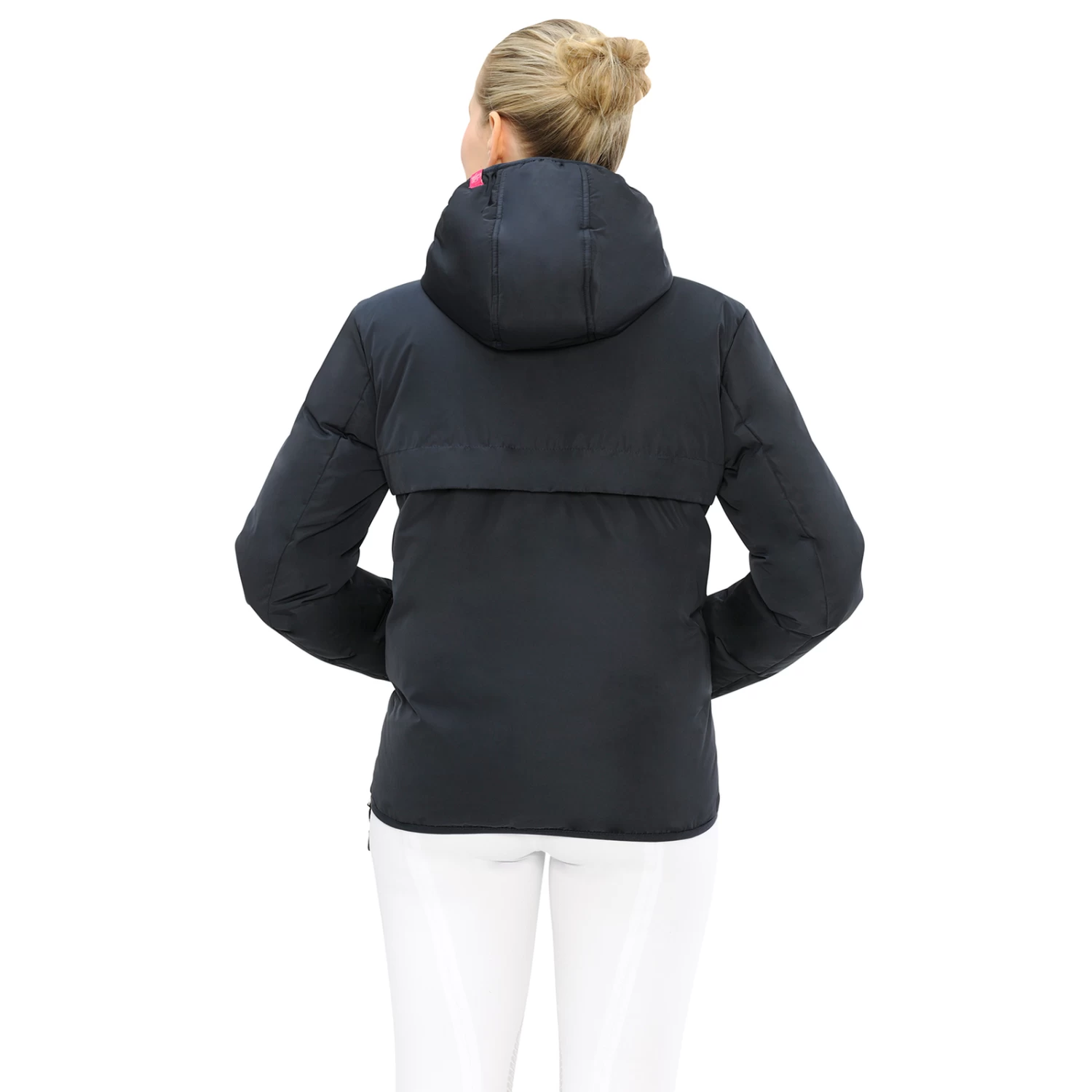 The Jodie Windbreaker combines the sporty design of a windbreaker with the advantages of a winter jacket. The high quality synthetic down lining keeps you cuddly warm even in cold temperatures. The hood and side pockets are lined with soft fleece.To make it easier to put on, there is a zipper on the side. The two zipped side pockets and the breast pocket offer space for your small essentials, such as mobile phone or keys.