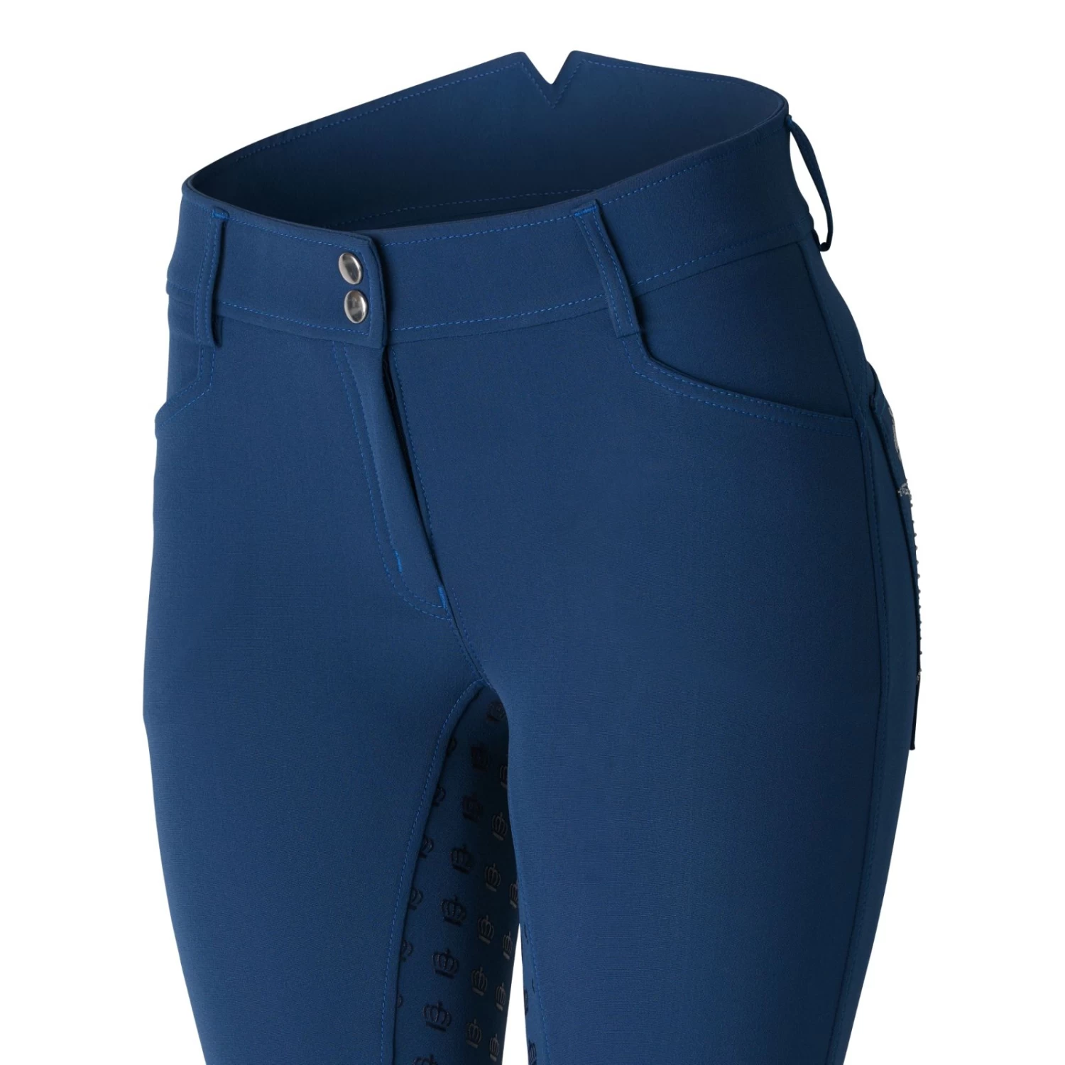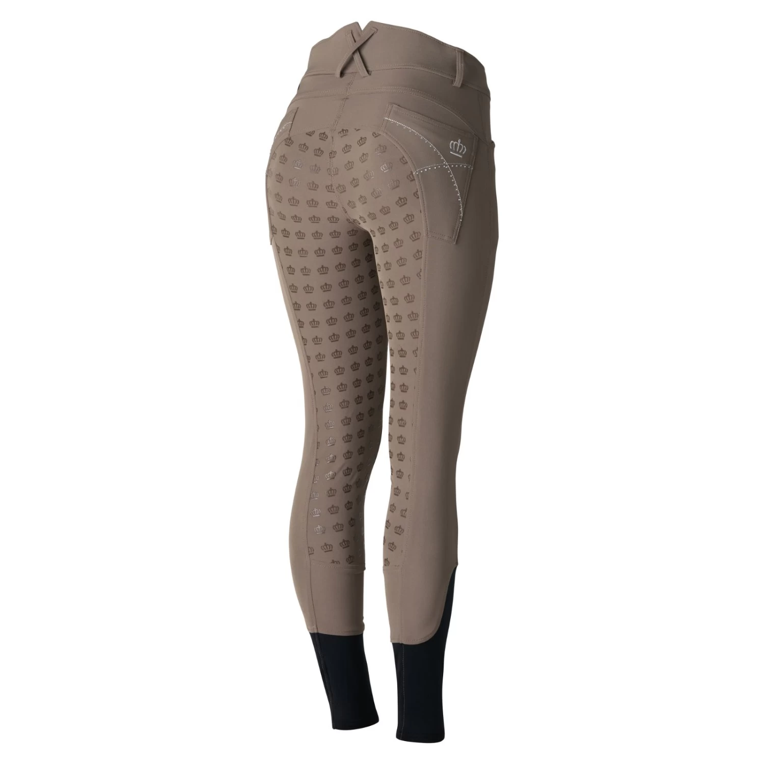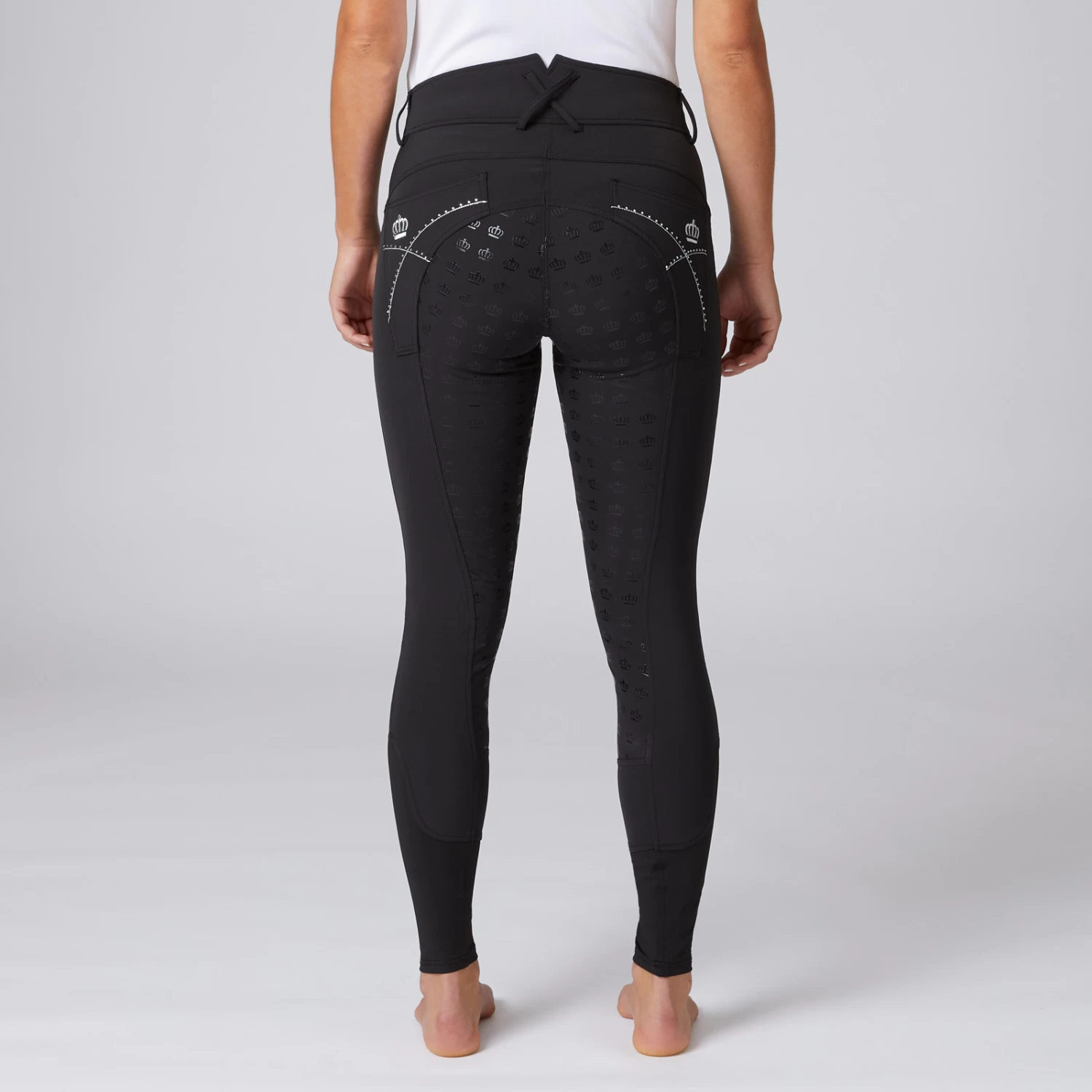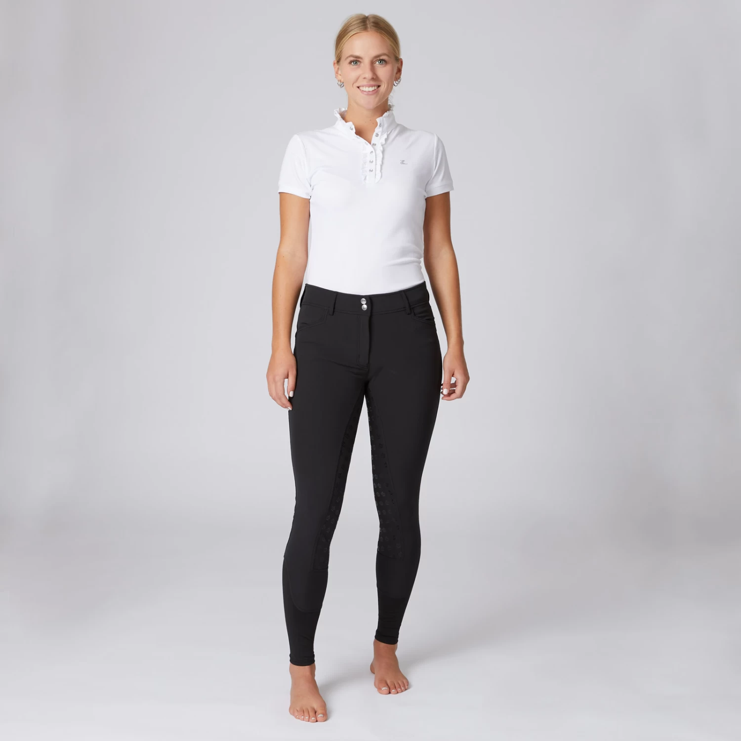 These gorgeous breeches take your outfit to the next level. A high waist keeps them in place, and the silicone full seat ensures good grip to the saddle. Elastic leg bottoms fit perfectly under your favourite boots. The back pockets are decorated with embroidery and crystals.