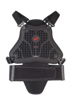 The back protector is completely foldable and, by removing the chest protector, can be used individually by adding accessory braces, sold separately.